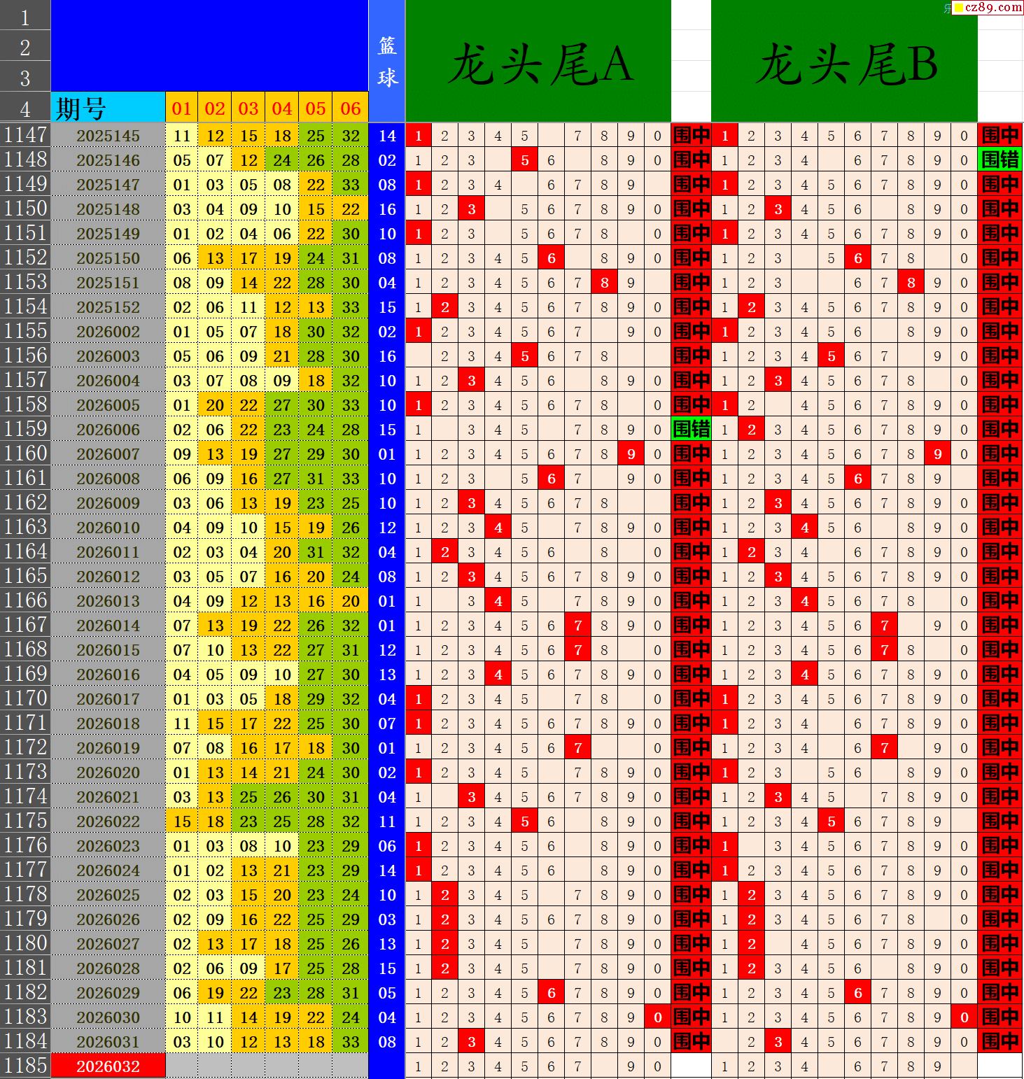 26年032期秋雨龙头凤尾走势图表