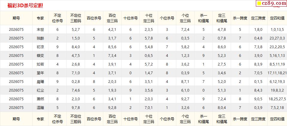075期福彩3D牛彩特邀专家杀号定胆推荐