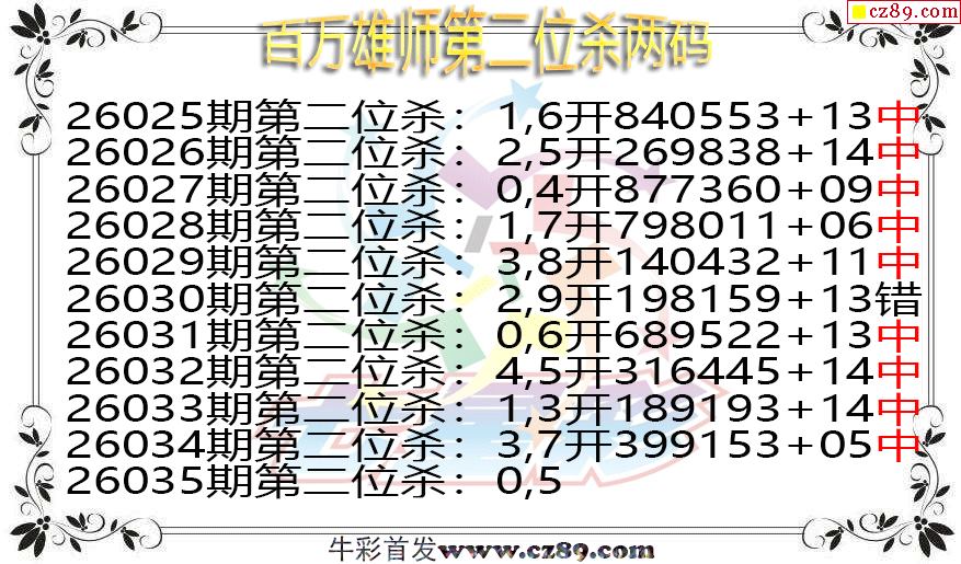 七星彩2026035期百万雄师第二位杀两码图谜 10中9