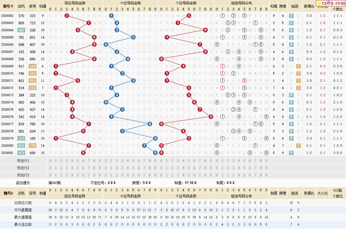 082期体彩排列3近期历史号码图表