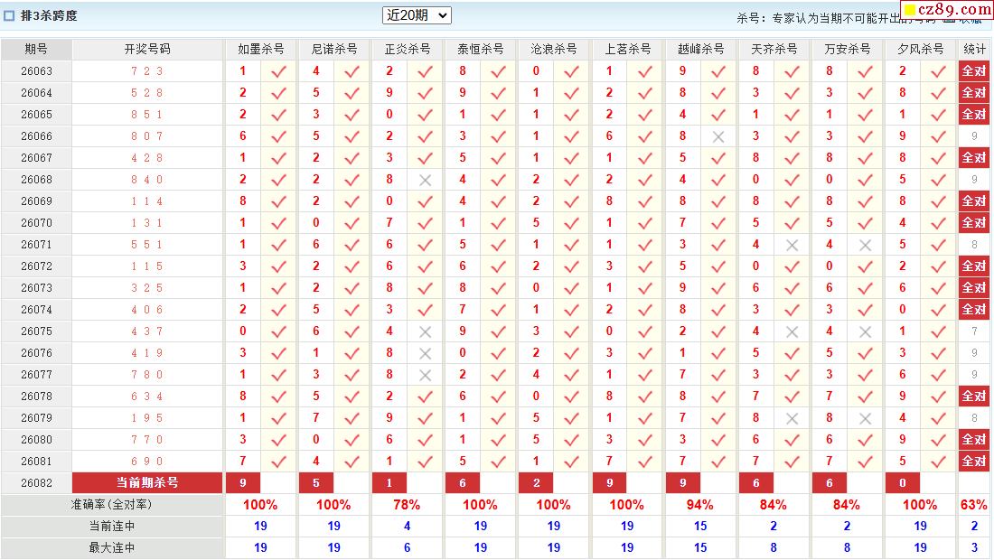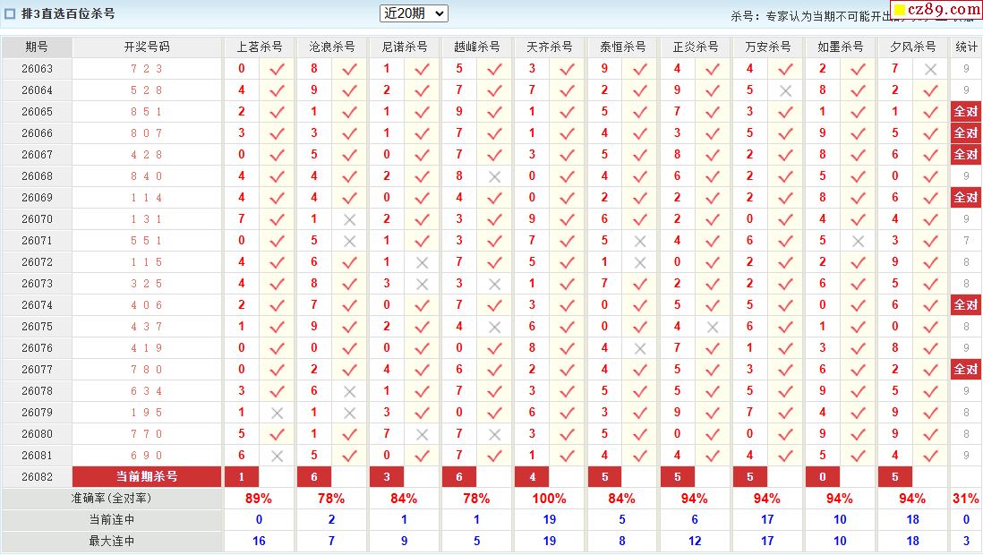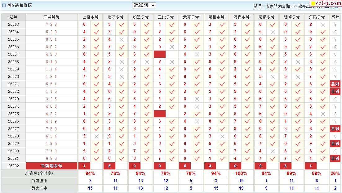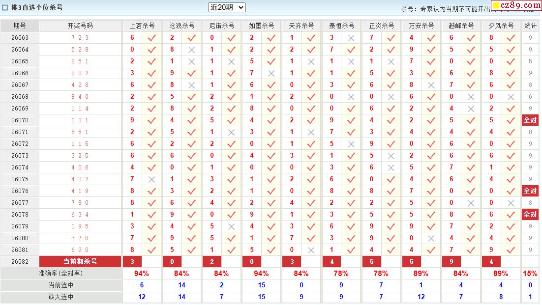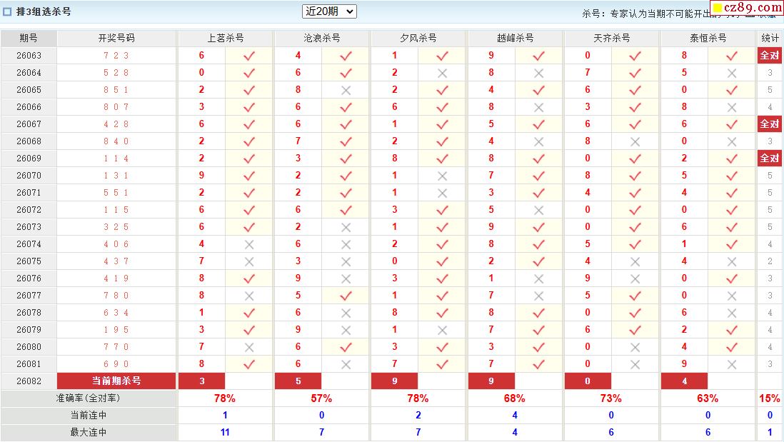 26年082期彩宝贝专家体彩P3杀号定码图表