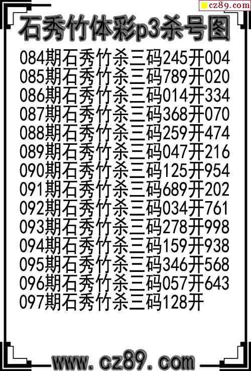 26年097期石秀竹体彩p3杀号图