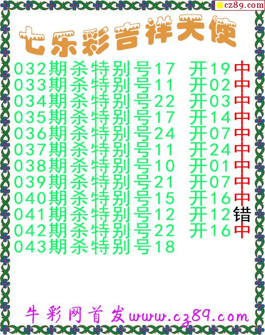 七乐彩2026043期流光岁月杀码图谜 10中6