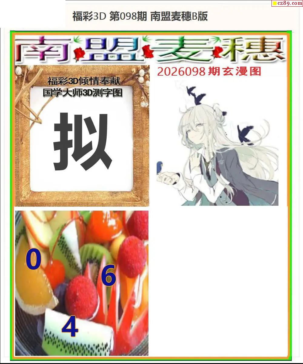 牛彩版3D字谜彩报图26年098期打印版