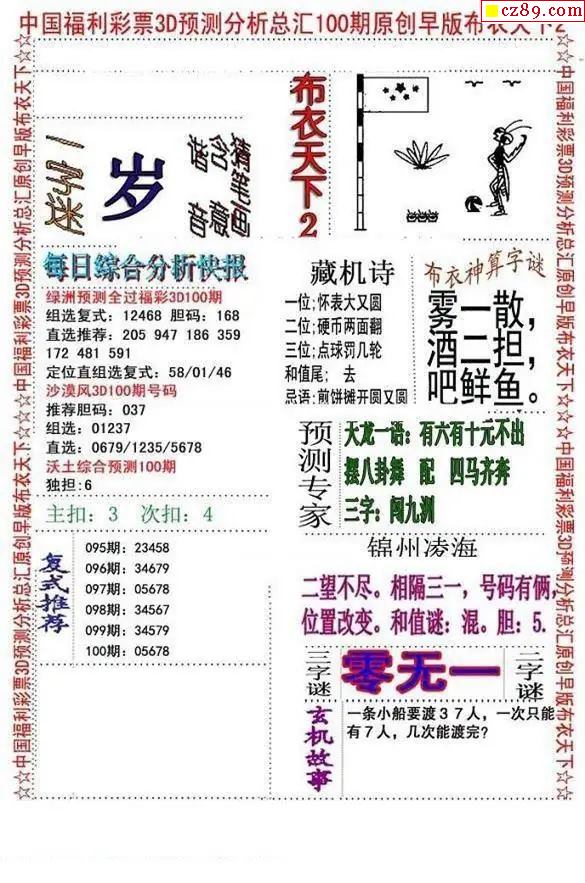 2026100期3d图谜汇总(五)