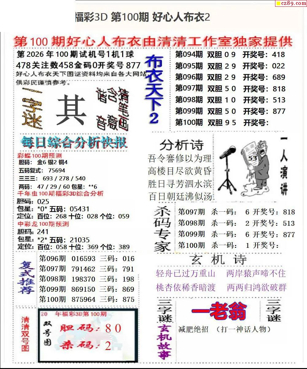 2026100期3d字谜图谜总汇
