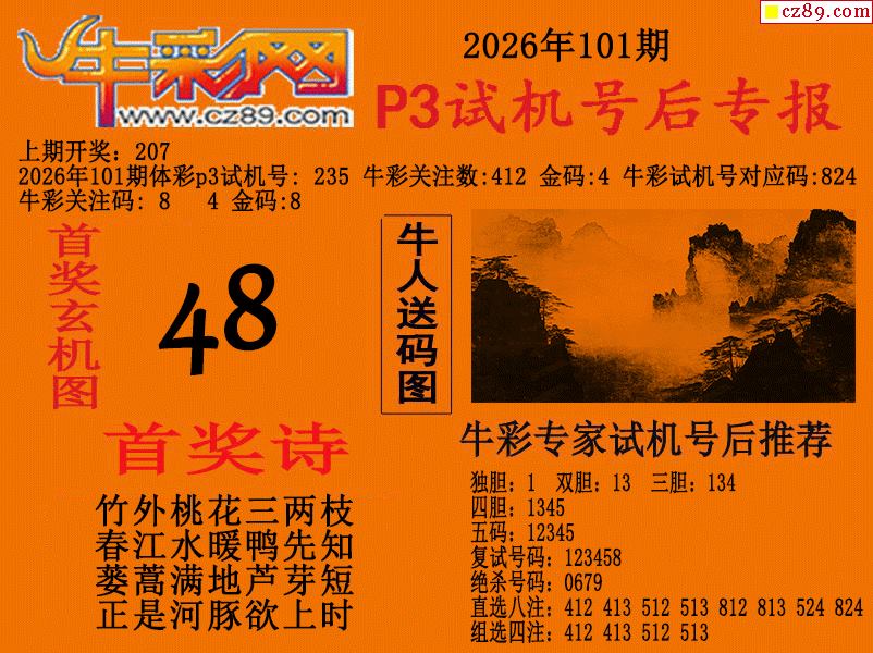 2026101期p3试机号后牛彩网专报
