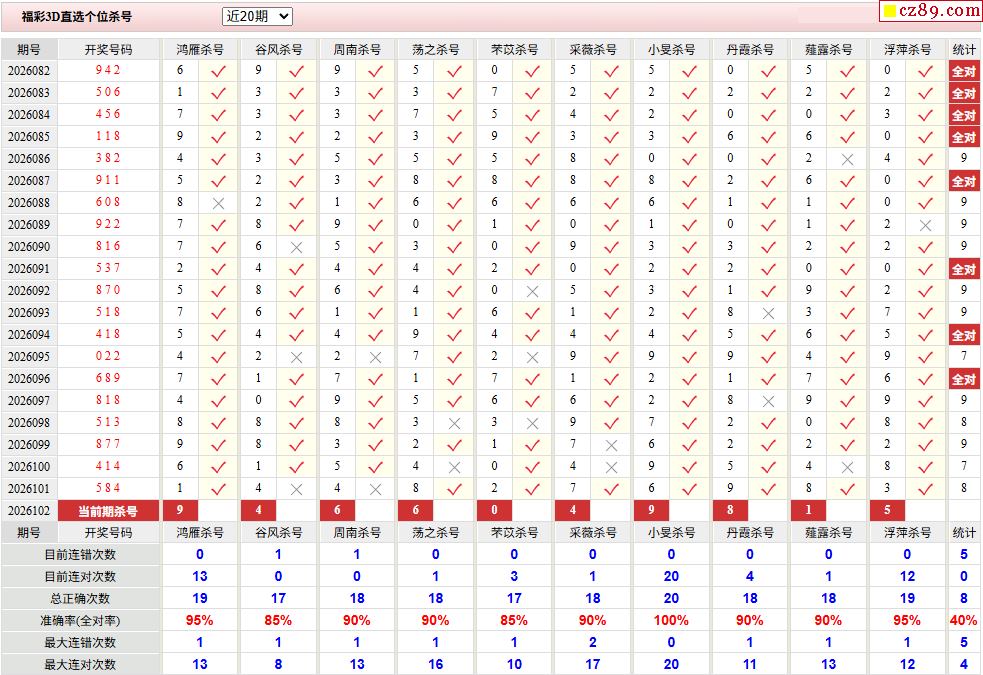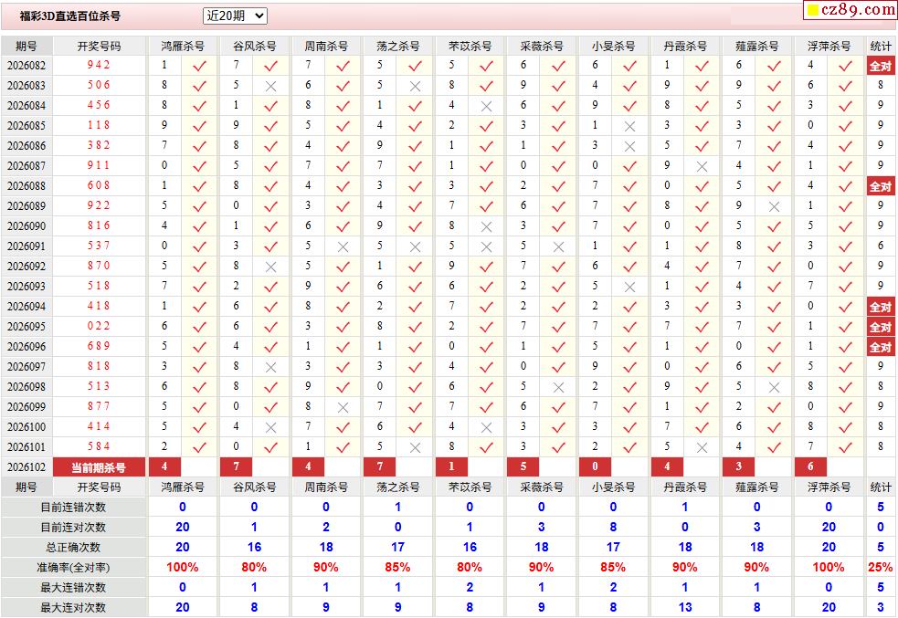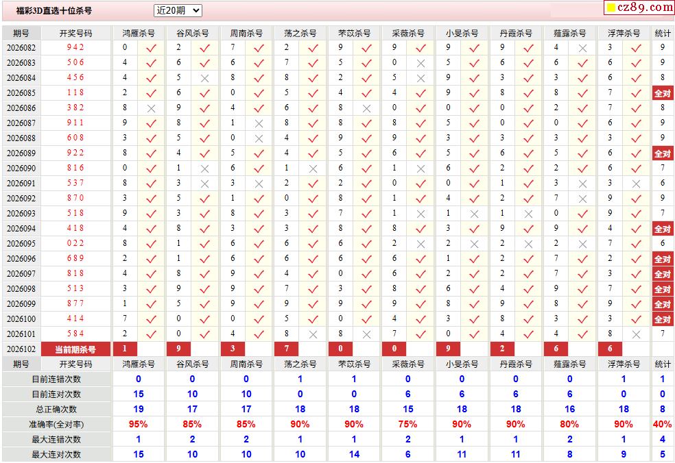 26年102期彩宝贝专家福彩3D杀号定码图表