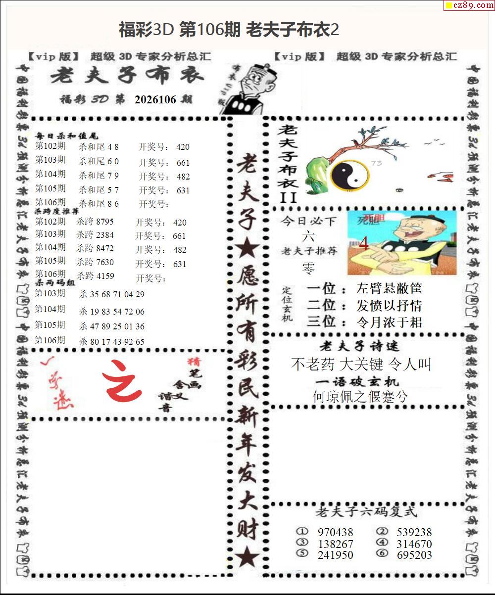 牛彩版3D字谜彩报图26年106期打印版