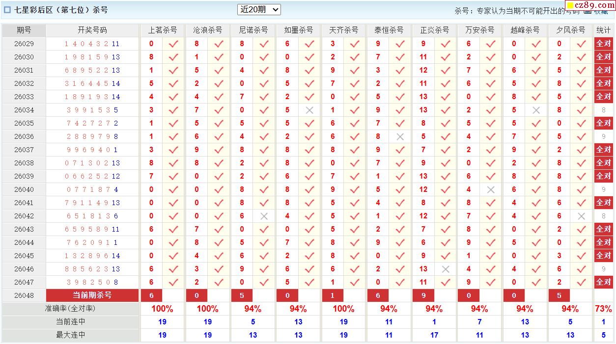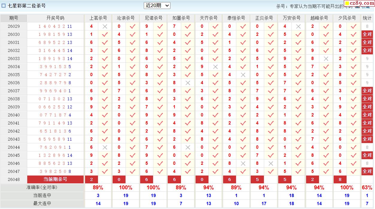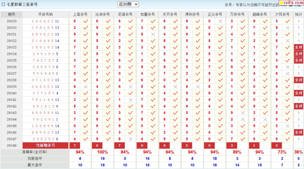048期彩票专家体彩七星彩定位杀号图表