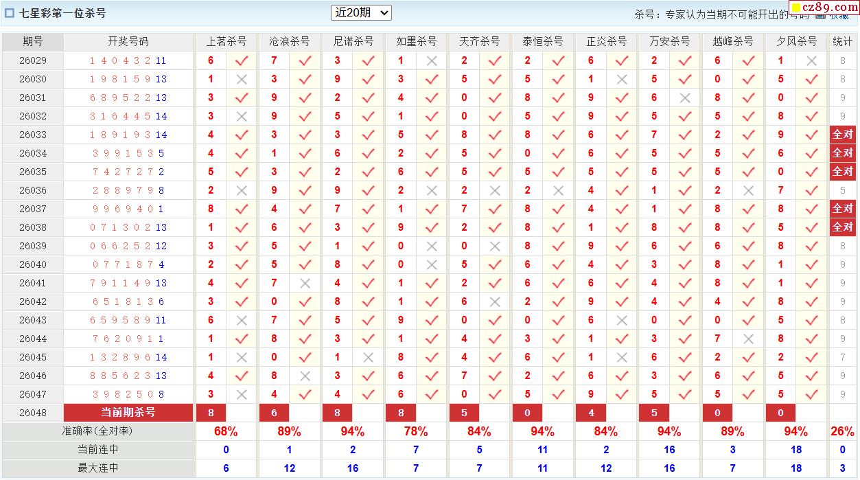 七星彩048期 澳客各路专家直选杀号预测推荐