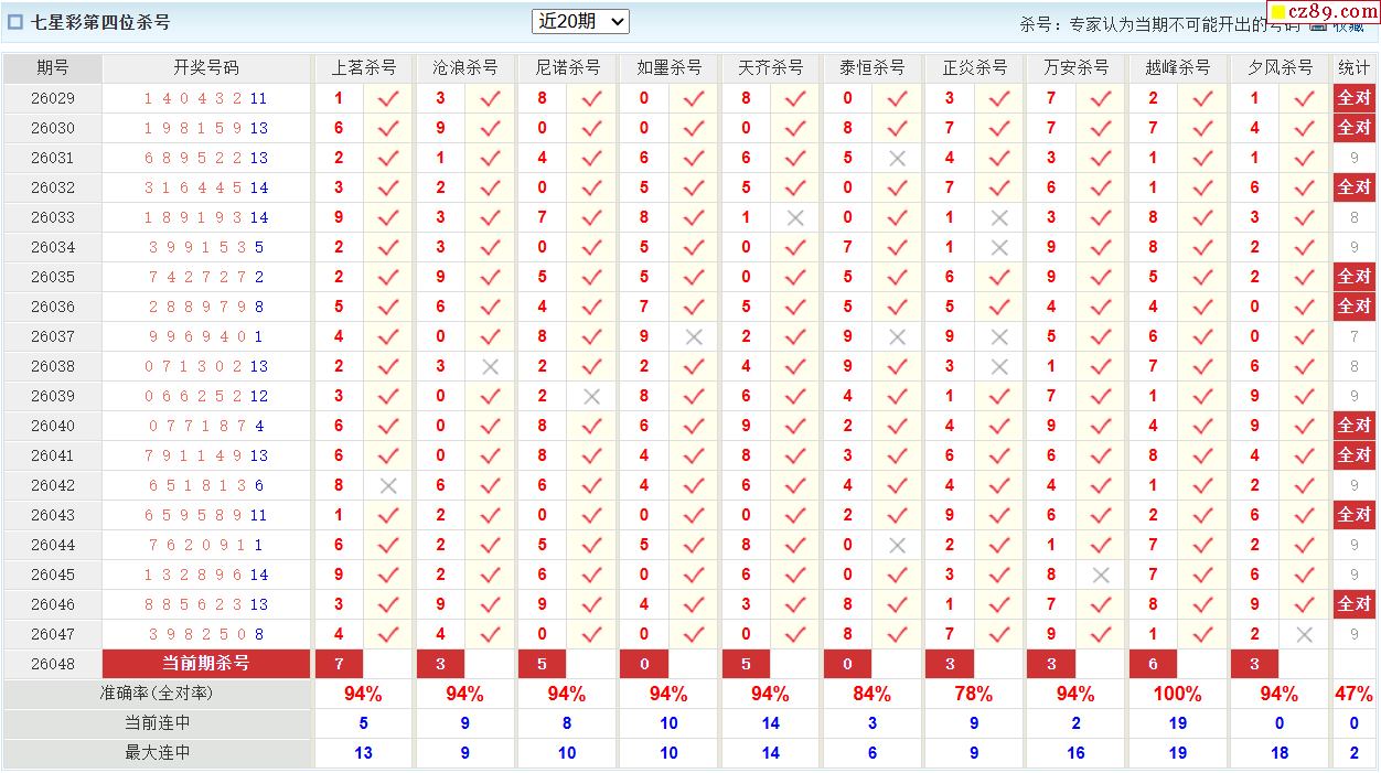 七星彩048期 彩宝贝专家直选杀号预测图表