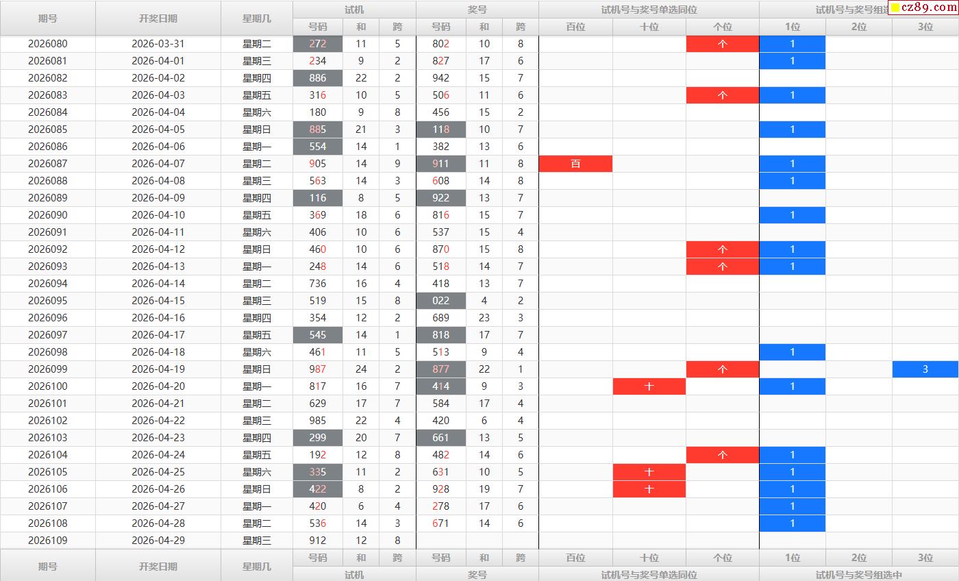 千禧3D试机号2026109期853关注数452金码4试机号对应码667