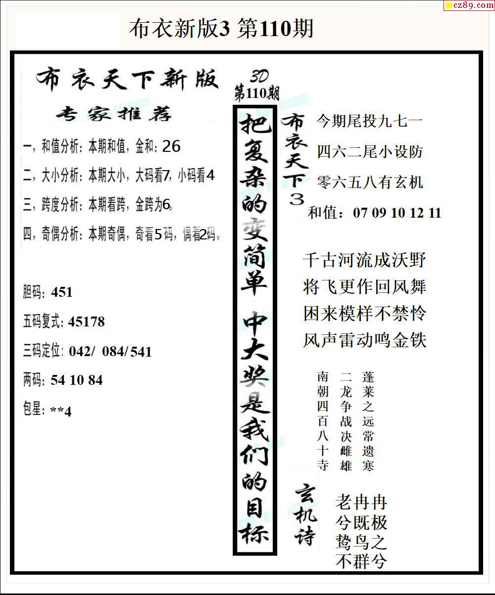 2026110期3D图谜汇总(一)