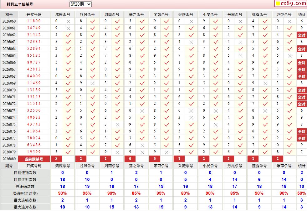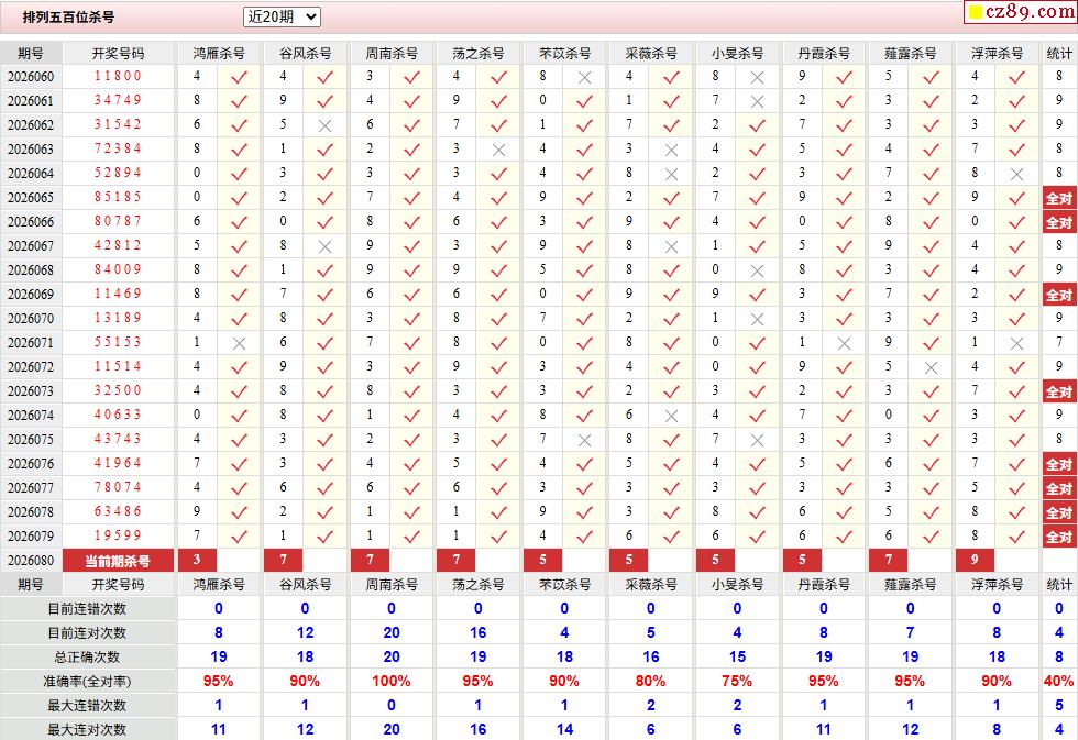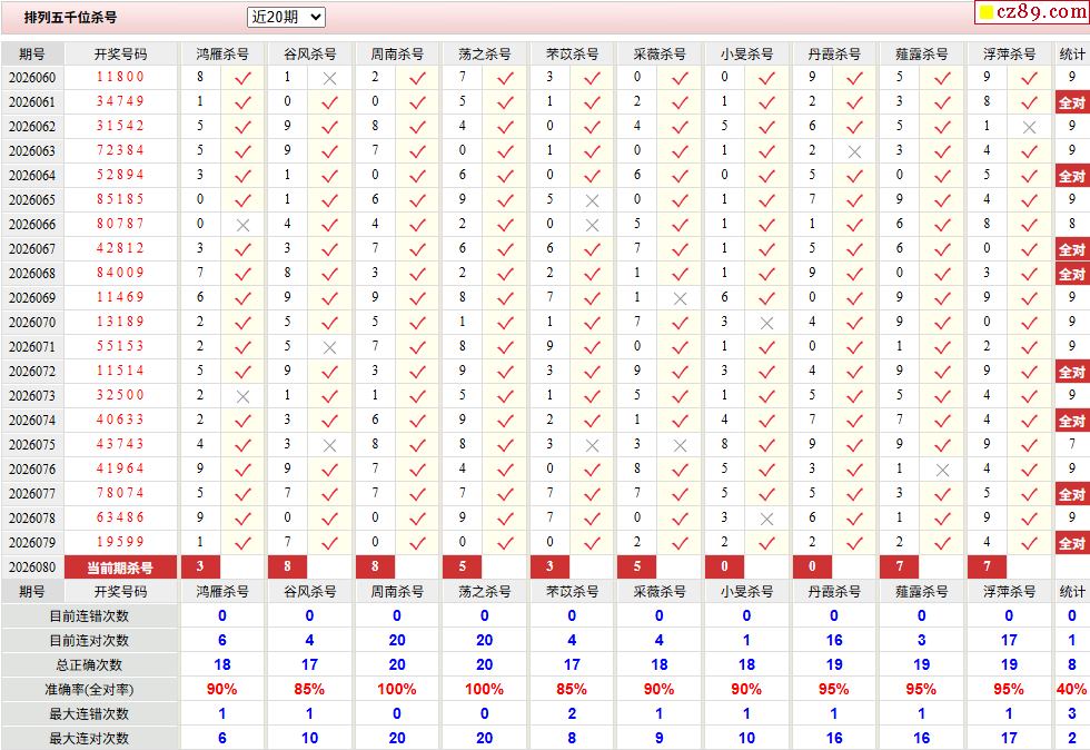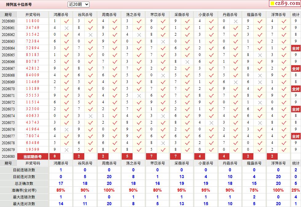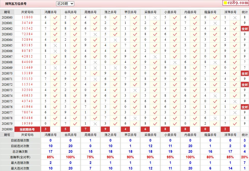 26年080期彩宝贝专家体彩P3杀号定码图表