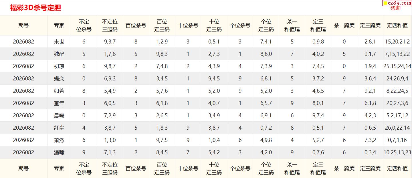 26年082期彩宝贝专家福彩3D杀号定码图表