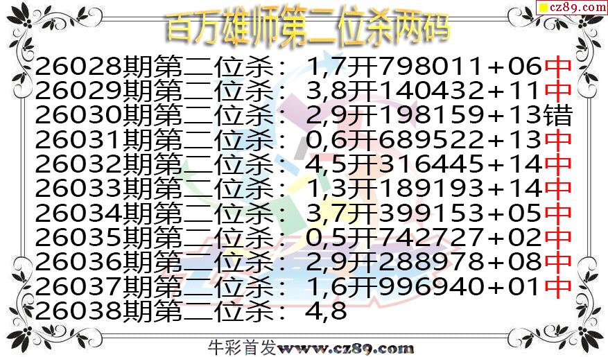 七星彩2026038期百万雄师第二位杀两码图谜 10中9