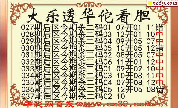 大乐透2026037期华佗看胆后区杀二码图谜 10中7