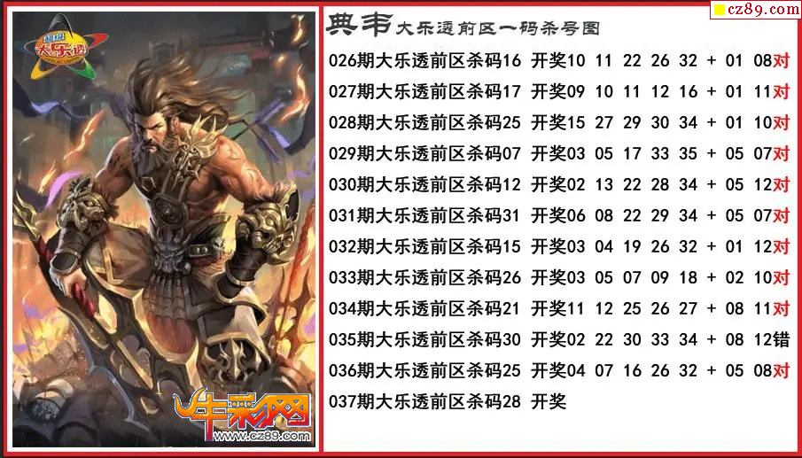 大乐透037期典韦前区一码杀号图