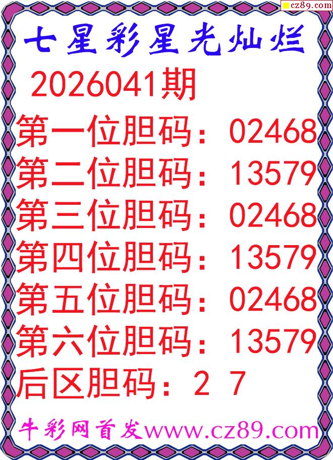 2026年041期七星彩 韩妹妹前两位心水2胆推荐