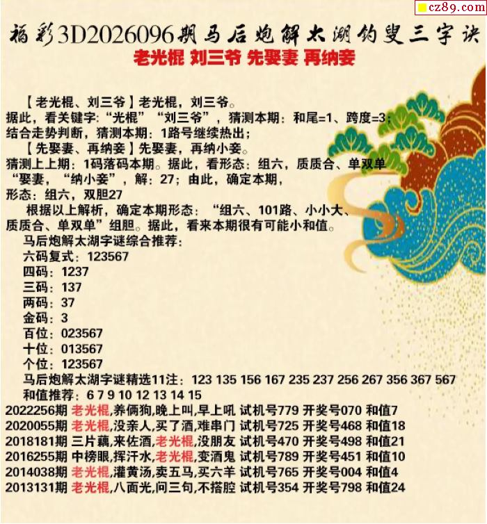 26年096期东山省3d太湖三字诀