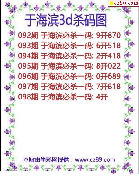 于海滨杀码2026097期3d图谜(原创)