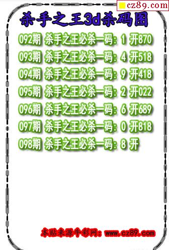 牛彩狙击手杀码2026098期3d图谜(原创)