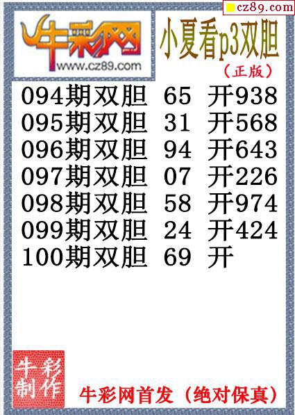 鸿运当头双胆报号100期体彩P3图谜