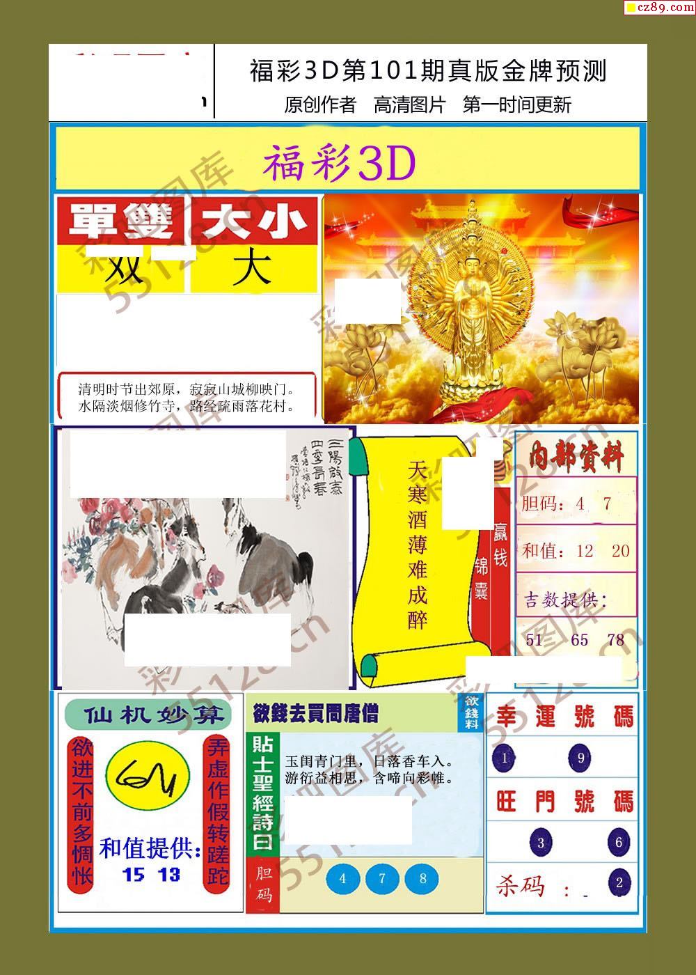 26年101期牛彩网福彩3D字谜汇总大全【晚间版】