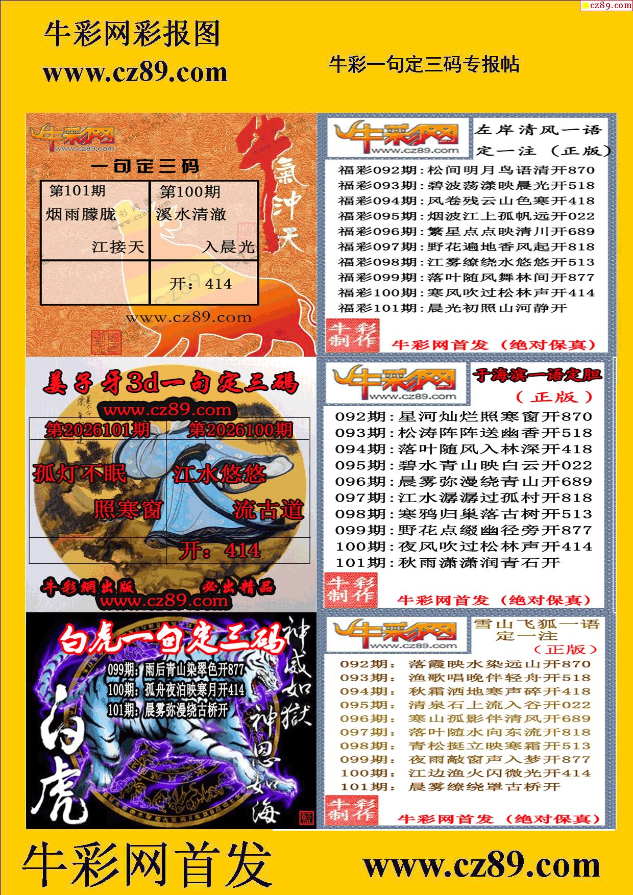2026101期牛彩一句定三码