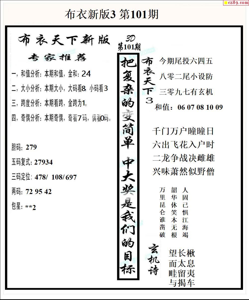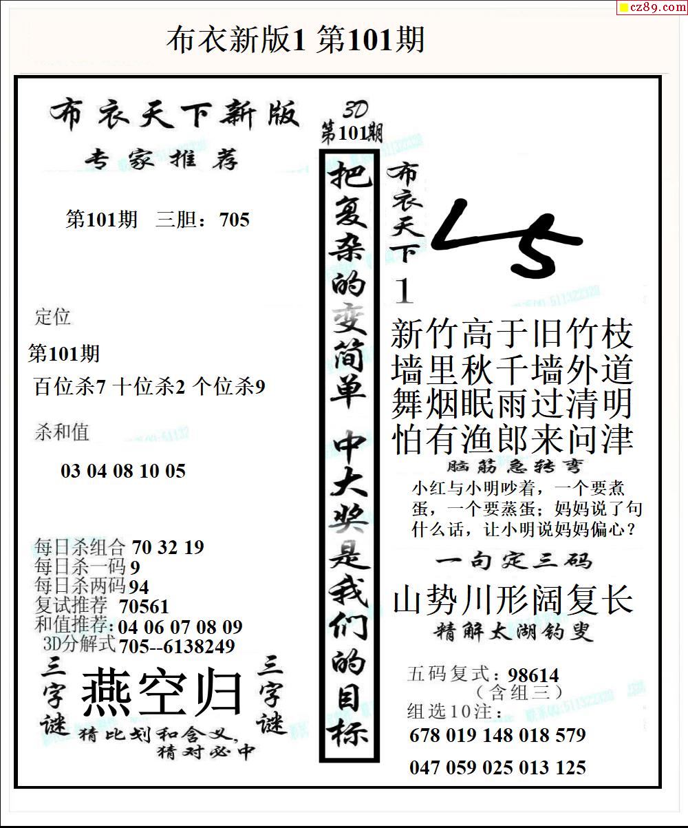 布衣天下新版2026101期3d图谜