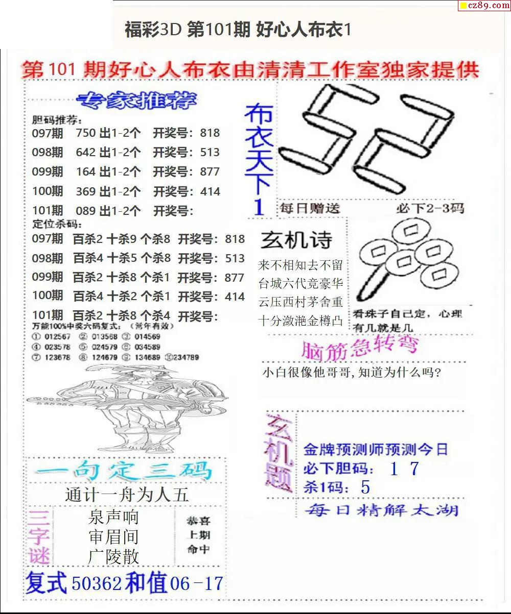 好心布衣2026101期3d图谜
