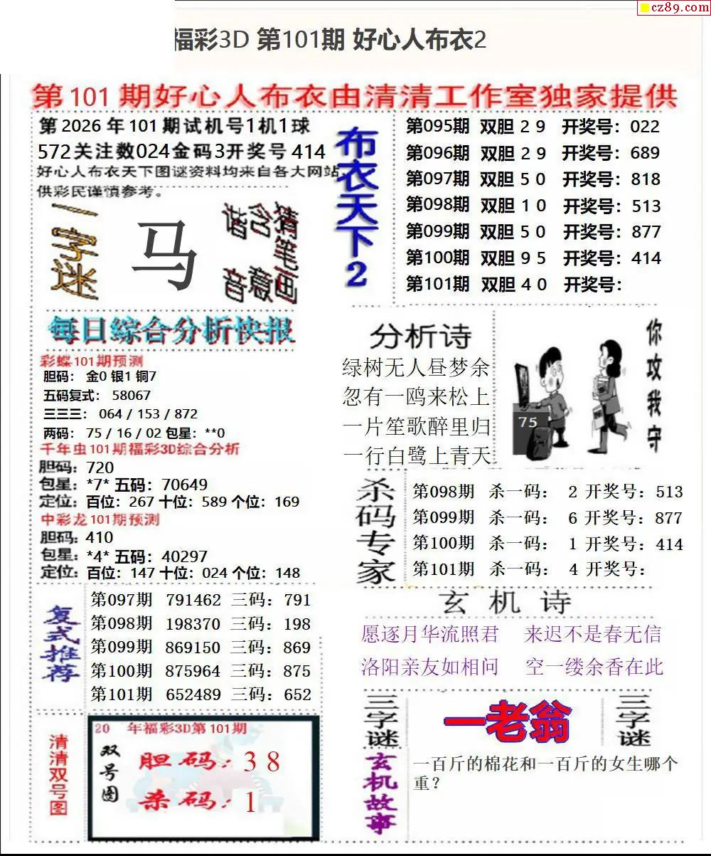 牛彩版3D字谜彩报图26年101期打印版