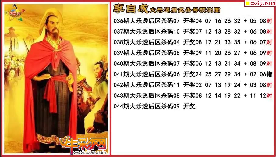 大乐透044期李存孝后区杀号推测图