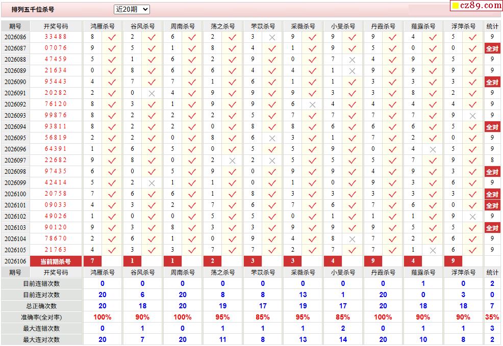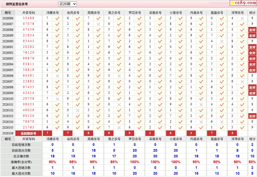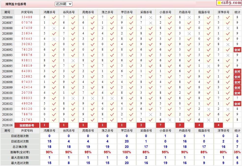 26年106期彩宝贝专家体彩P3杀号定码图表