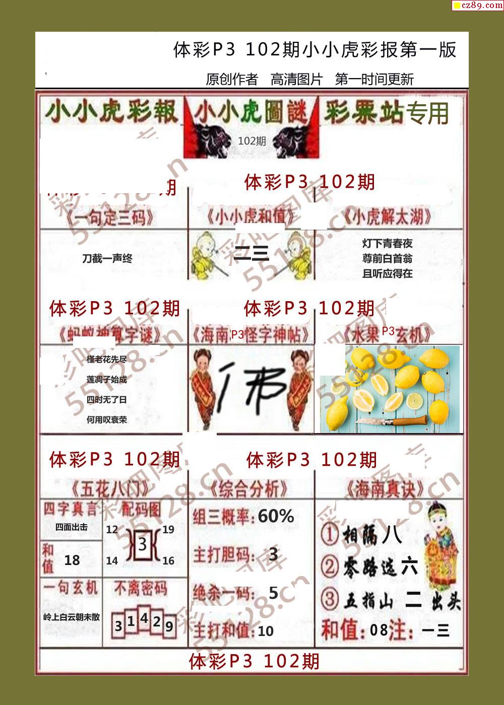 2026年083期牛彩网体彩P3画迷图谜汇总分享