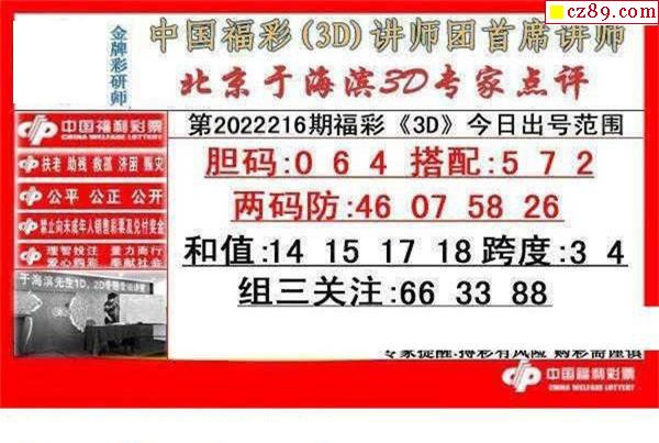 于海滨专家点评2022216期3d图谜