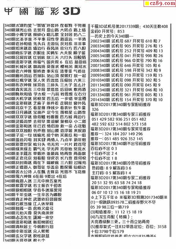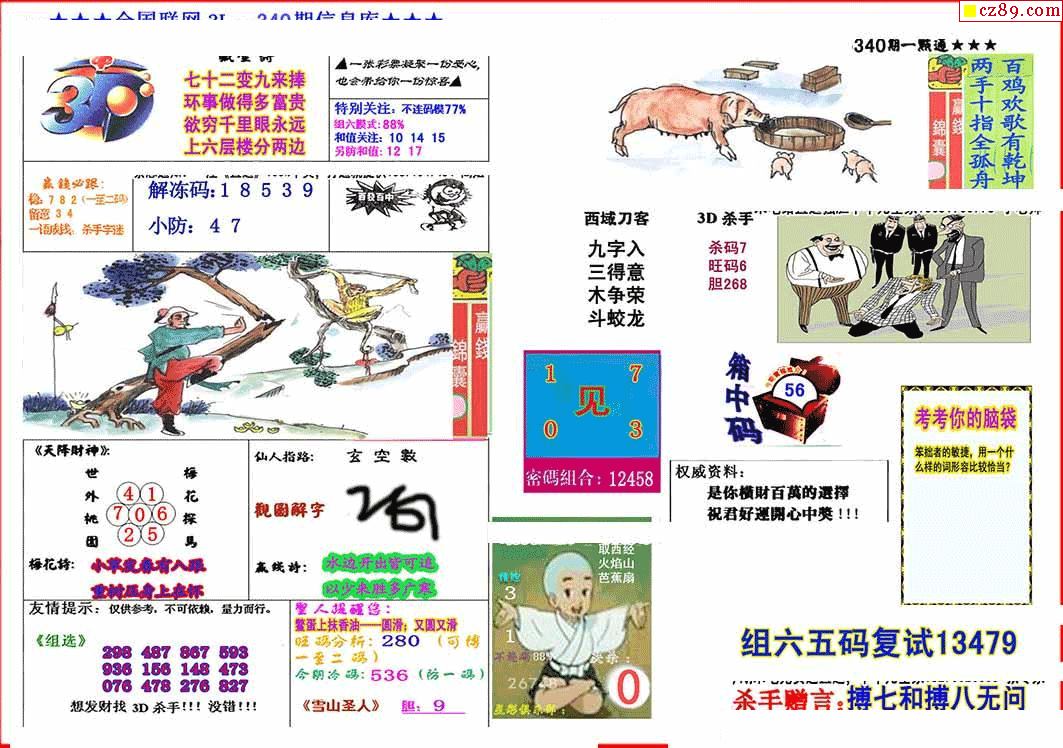 杀手+鑫马快报+字迷汇总25年340期3d图谜