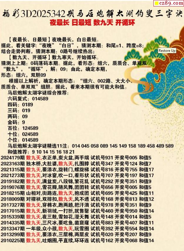 25年342期3d字谜太湖钓叟三字诀《保真》