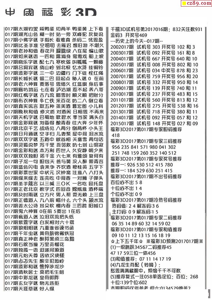 杀手+鑫马快报+字迷汇总26年017期3d图谜