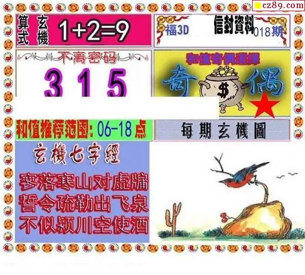 天宇多字和值谜2026018期3d图谜
