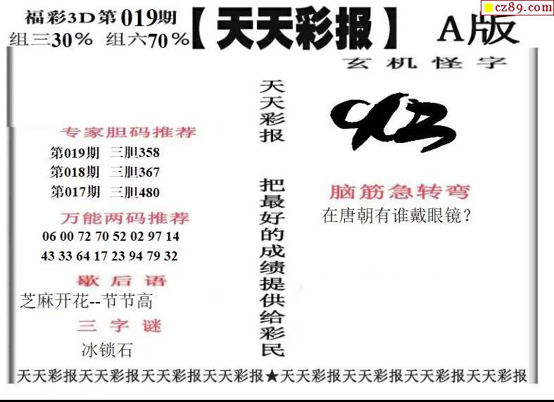 福彩3D2026019期天天彩报A版 天天彩报B版