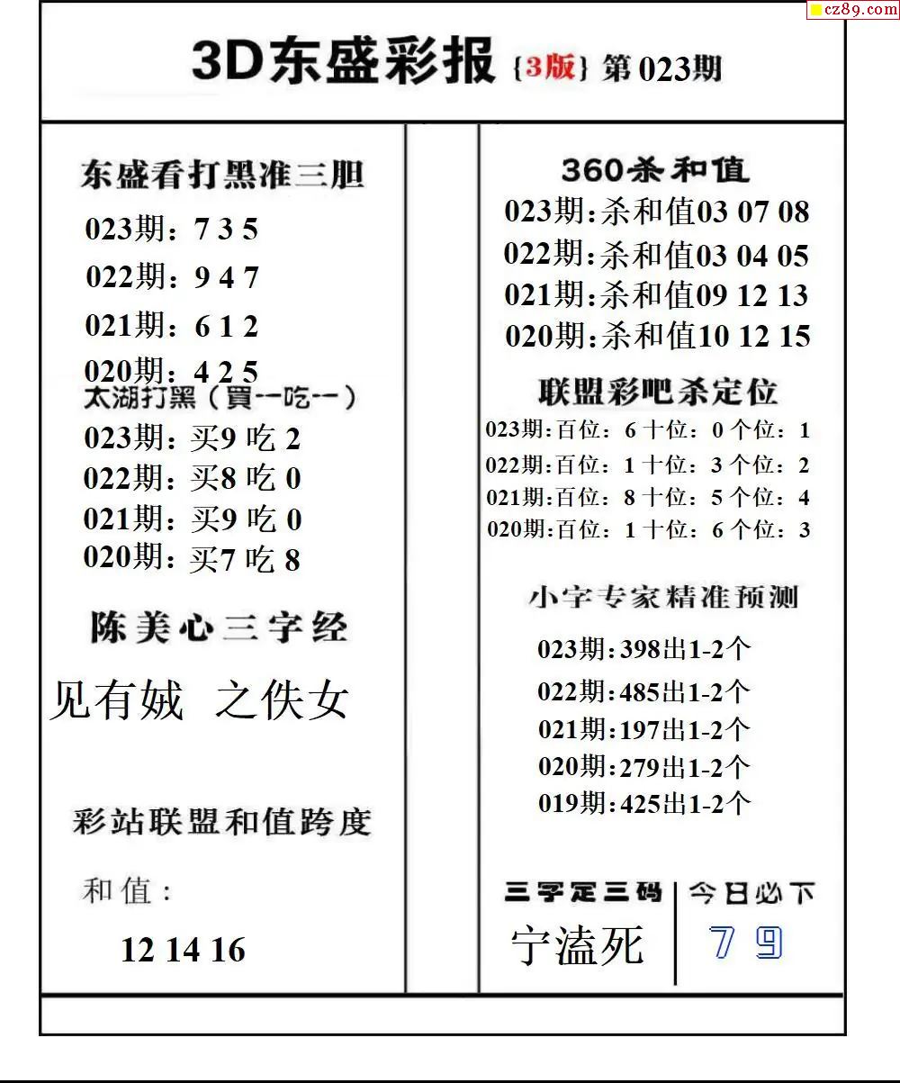 福彩3D2026023期东盛彩报+精品三毛会员版