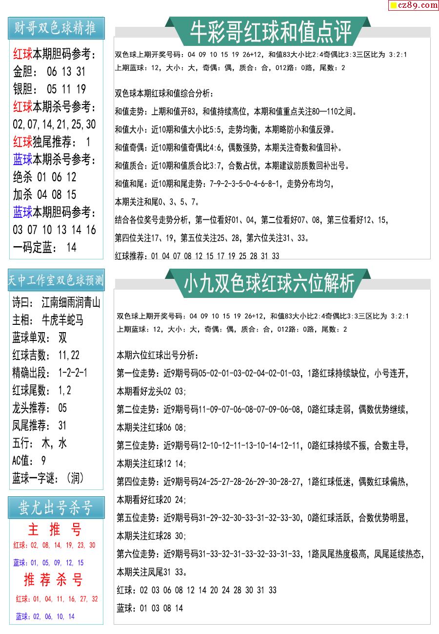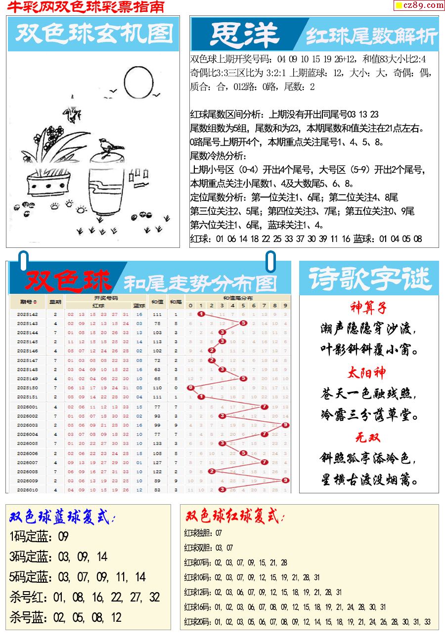26年011期双色球彩票指南【牛彩版】