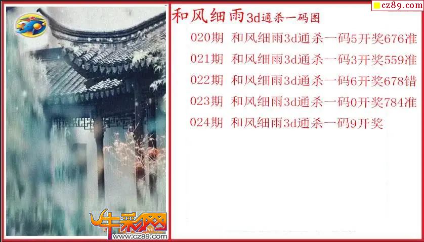 26年024期3d 和风细雨通杀一码图