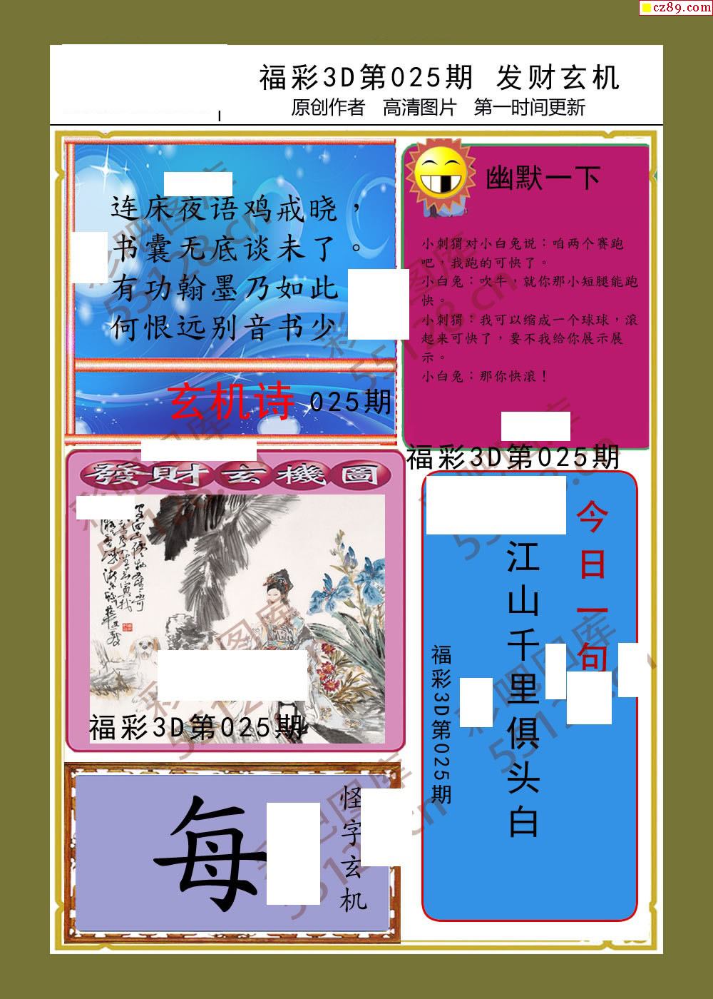 发财玄机26年025期福彩3d画谜
