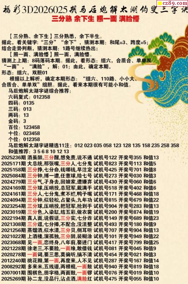 马后炮解26年025期3d太湖钓叟之 满脸懵