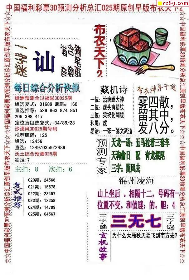新布衣天下26年025期3D图谜