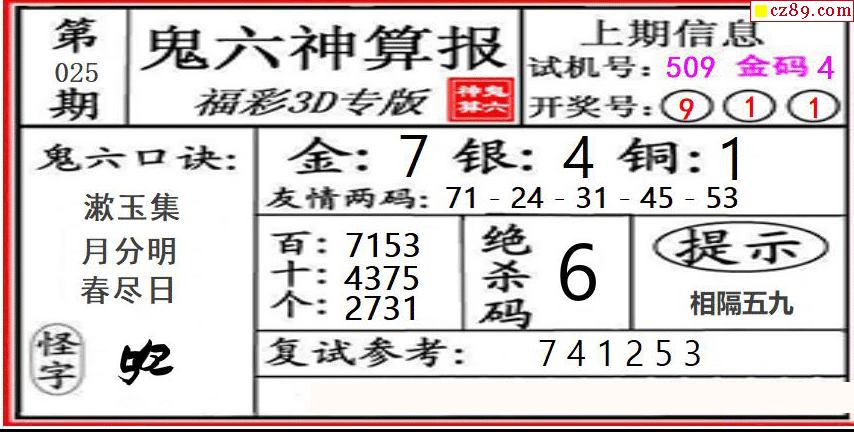 2026025期3D图谜汇总(一)