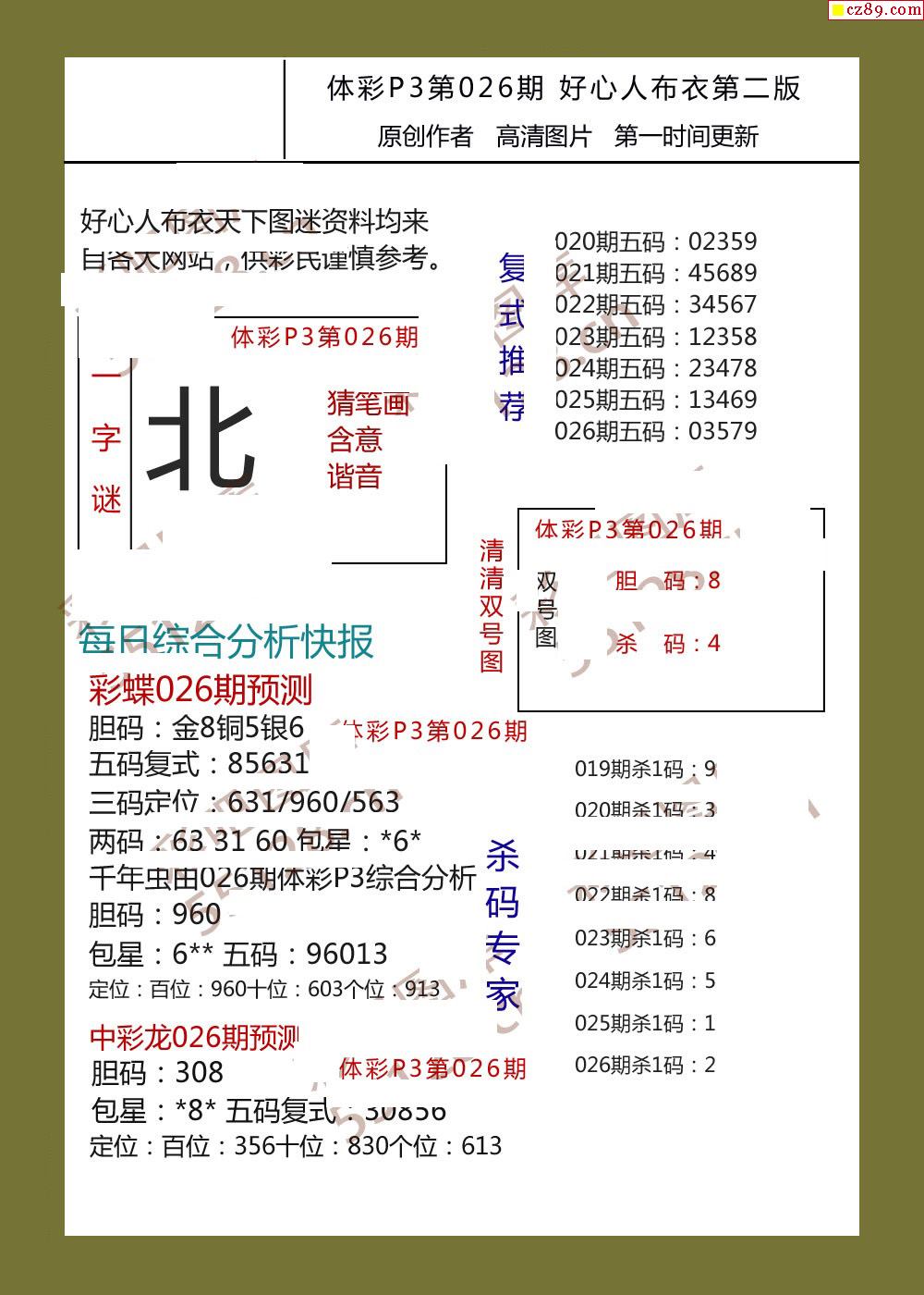 好心人布衣AB版026期体彩p3图谜